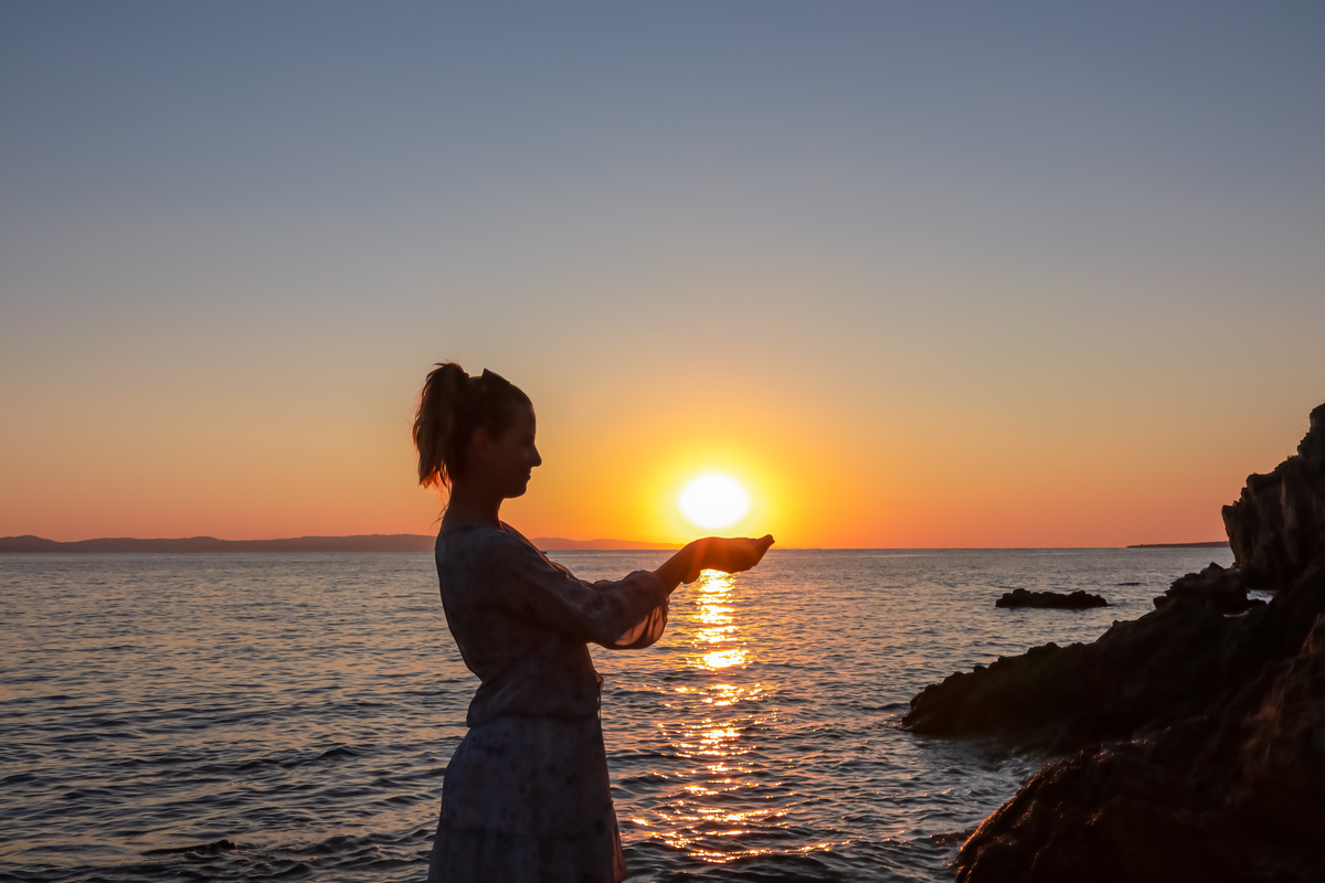 照片提着灯在黄昏海边等待的女儿人物背景看朝阳图片背影好看的女人这个是负能量