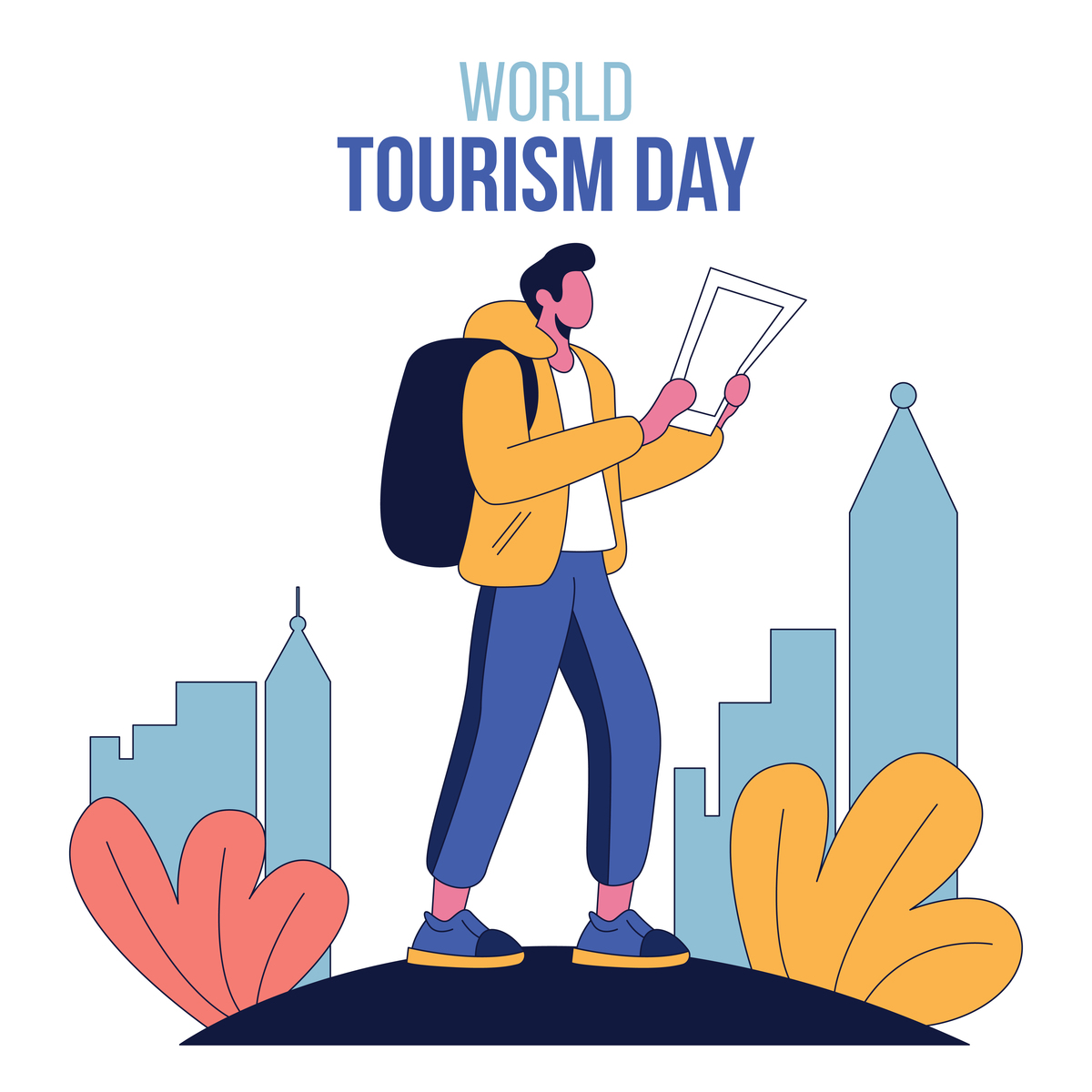 手绘春游背包客卡通徒步旅行图片