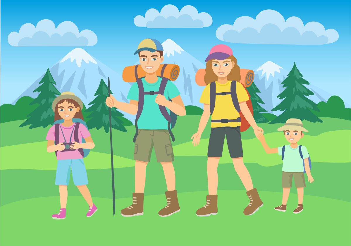 手绘春游背包客卡通徒步旅行图片_千图网